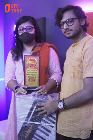 Every month Off Tune will organize a music contest where the 1st winner will be given 1 Branded Piano keybord and a Professonal Cover Music Video for free . And 2nd winner will be given 1 Branded Guitar and a Professonal Cover Music Video for free . And 3th - 10th winner will be given a 1 Branded Guitar .. and Top 100th winners will be given 50% off on our 1st service and Get upto 100% scholarship on our Courses . You must give audition to participate in this contest.